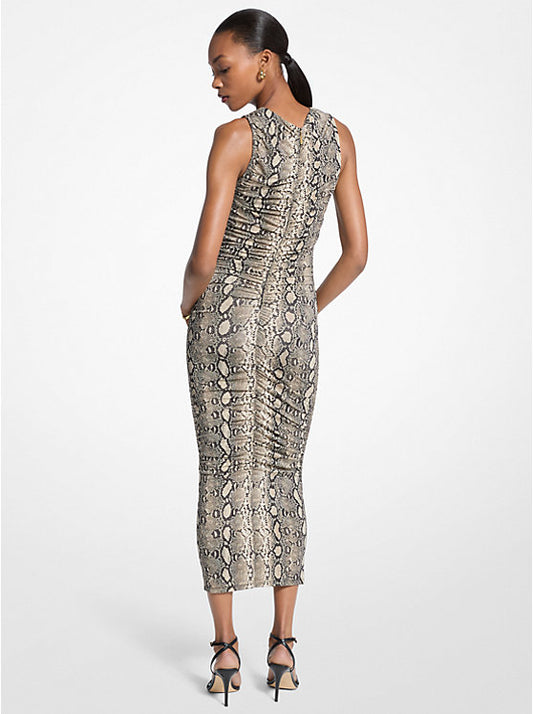 Snake Print Stretch Jersey Ruched Midi Dress