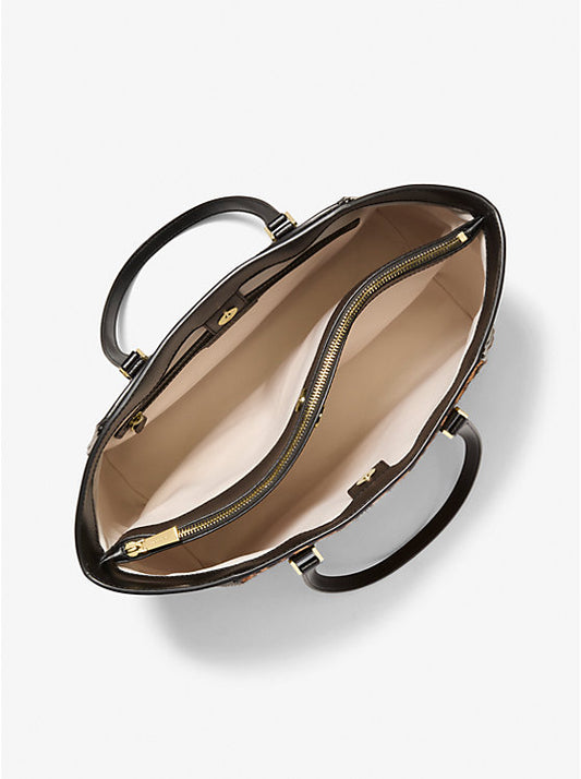 Taryn Large Signature Logo and Leather Tote Bag