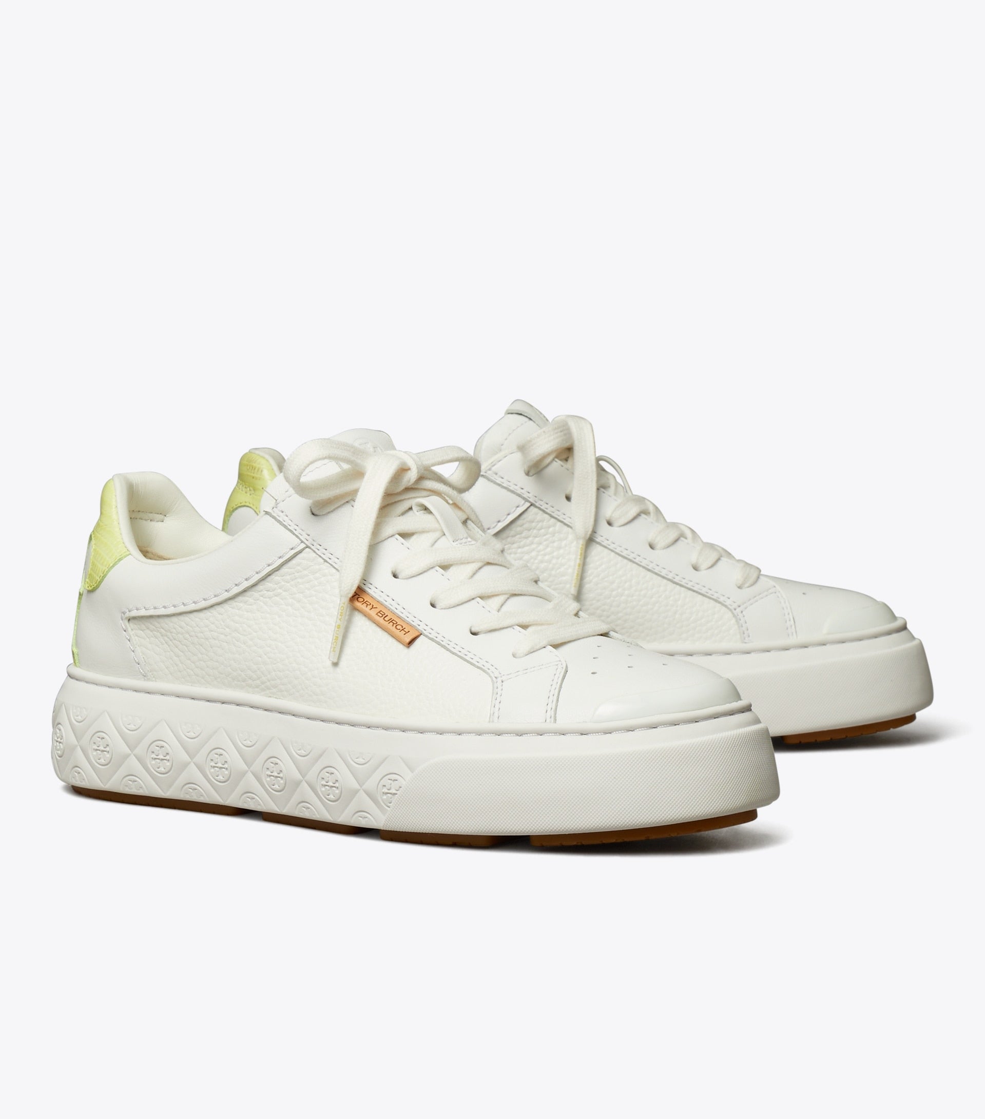 - Pebbled leather upper; napa leather trim