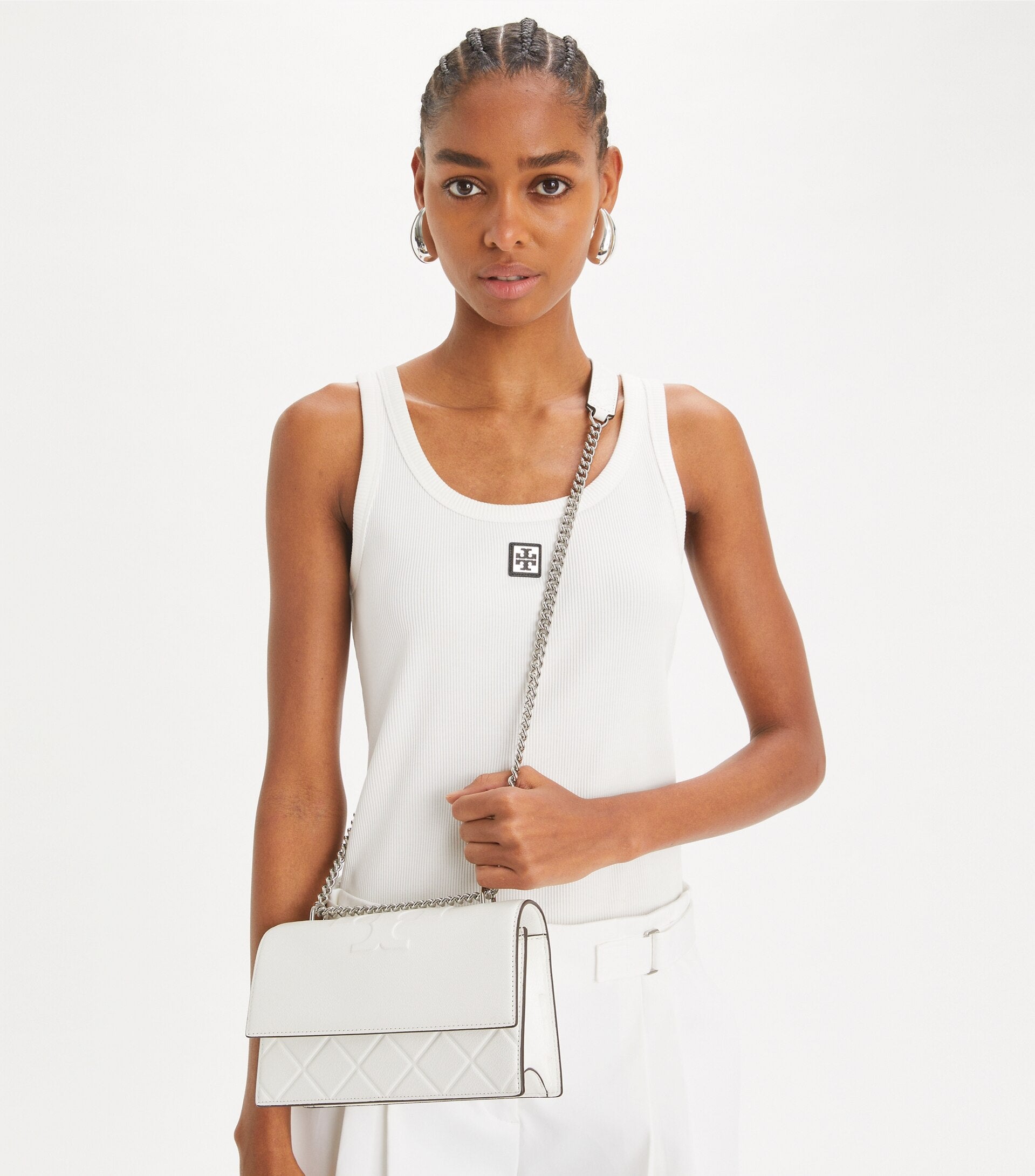 - Convertible chain shoulder strap with 22.2" (56.5cm) drop; leather shoulder guard for comfort