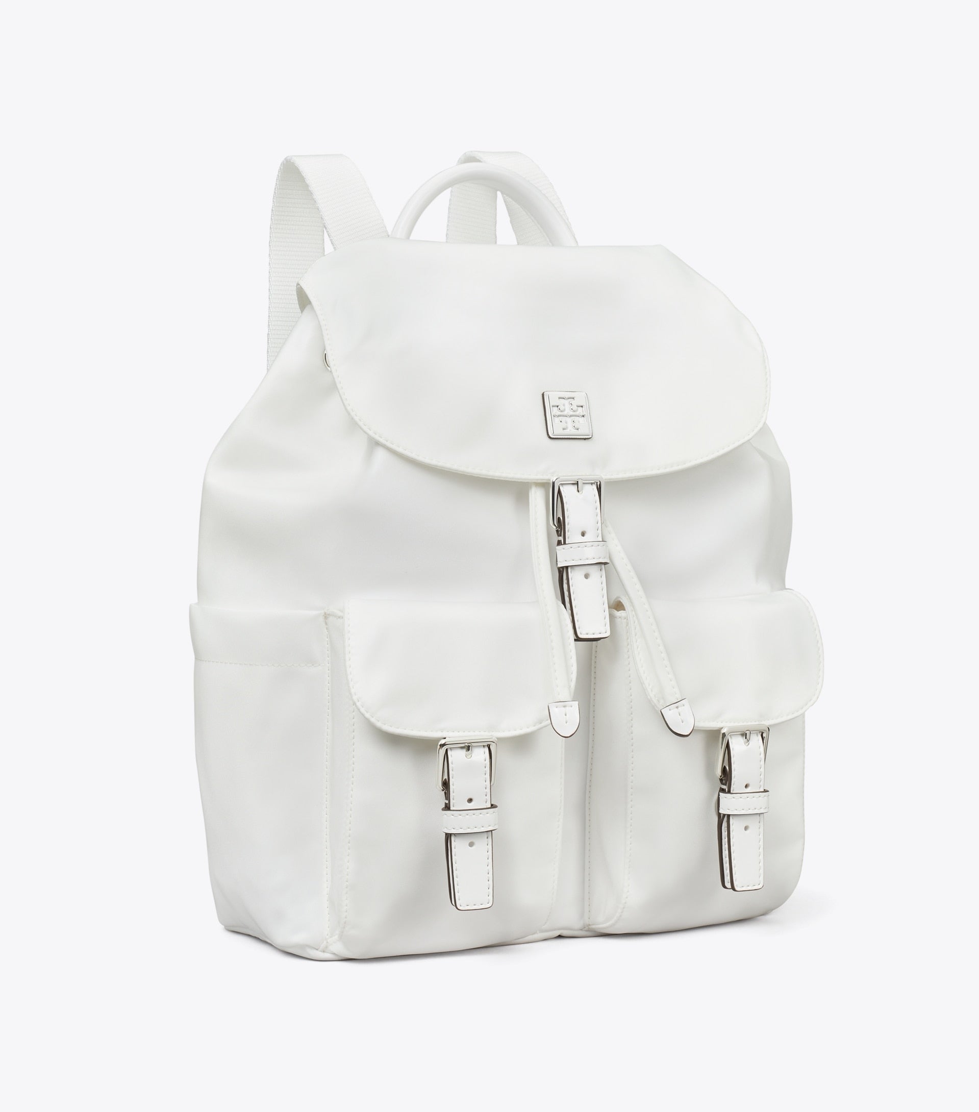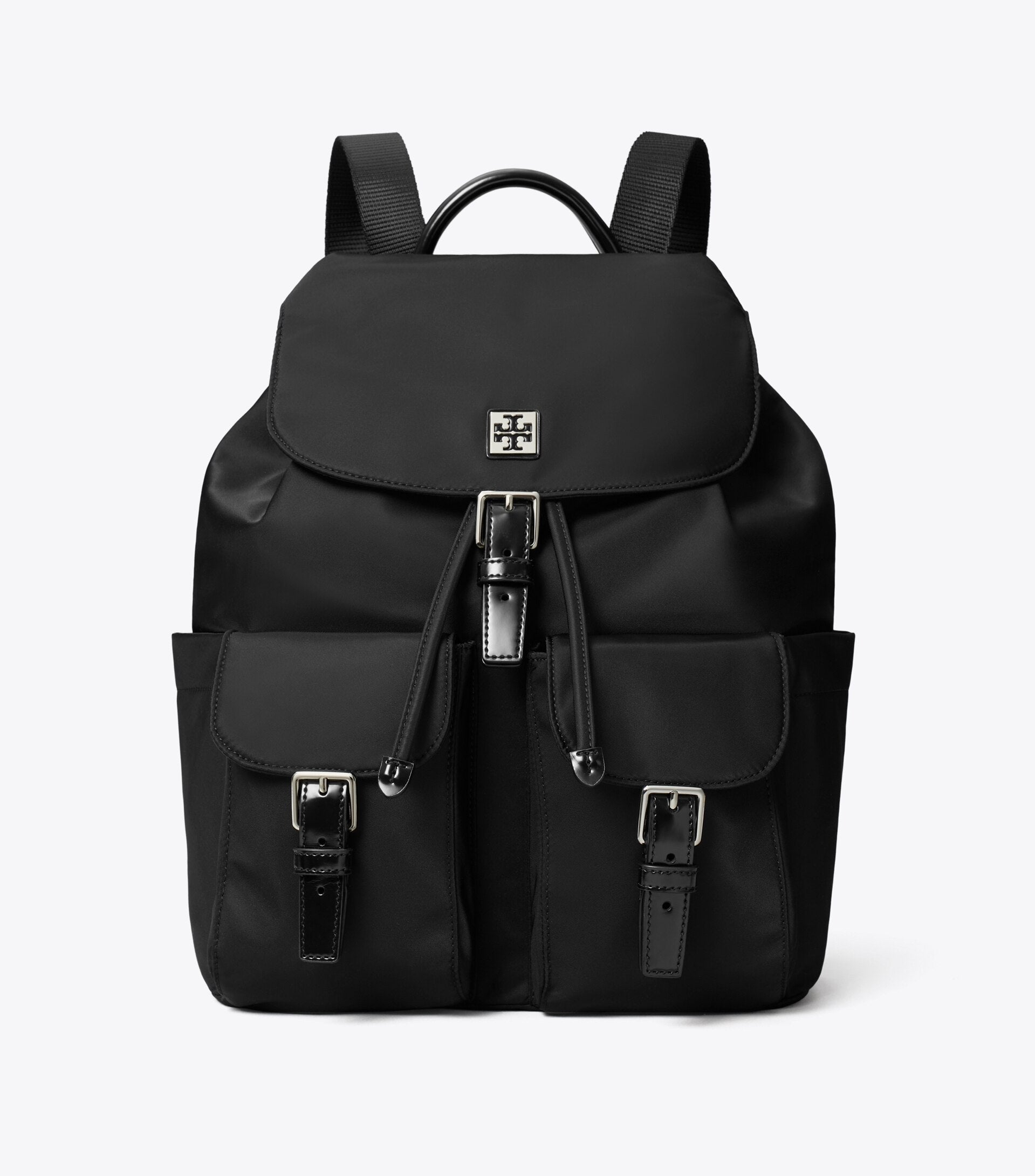 - 2 exterior front buckle pockets, 2 exterior side pockets, 1 exterior back zipper pocket, 1 interior front pocket, 1 interior zipper pocket