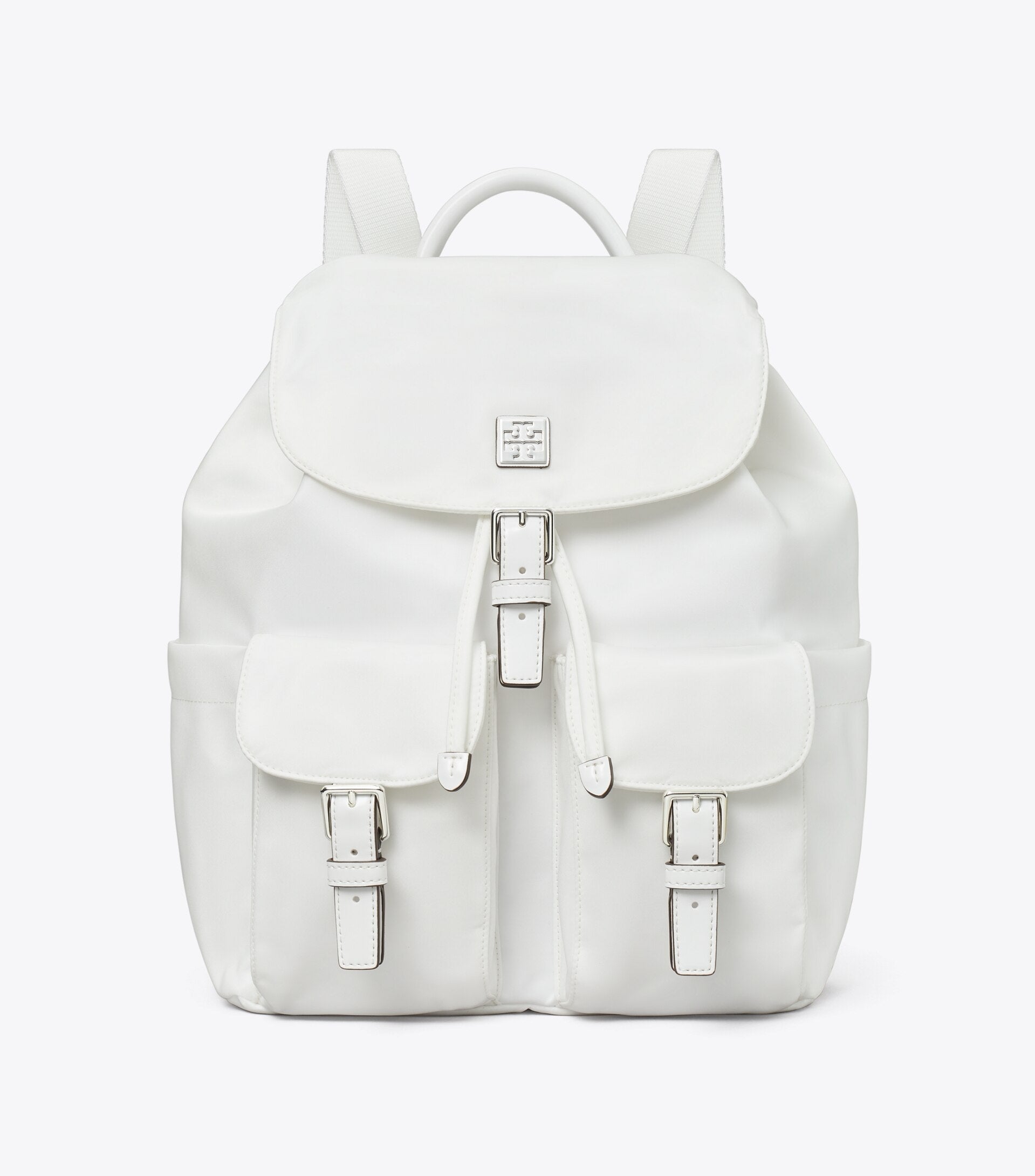 - Drawstring closure; flap with magnetic snap under buckle