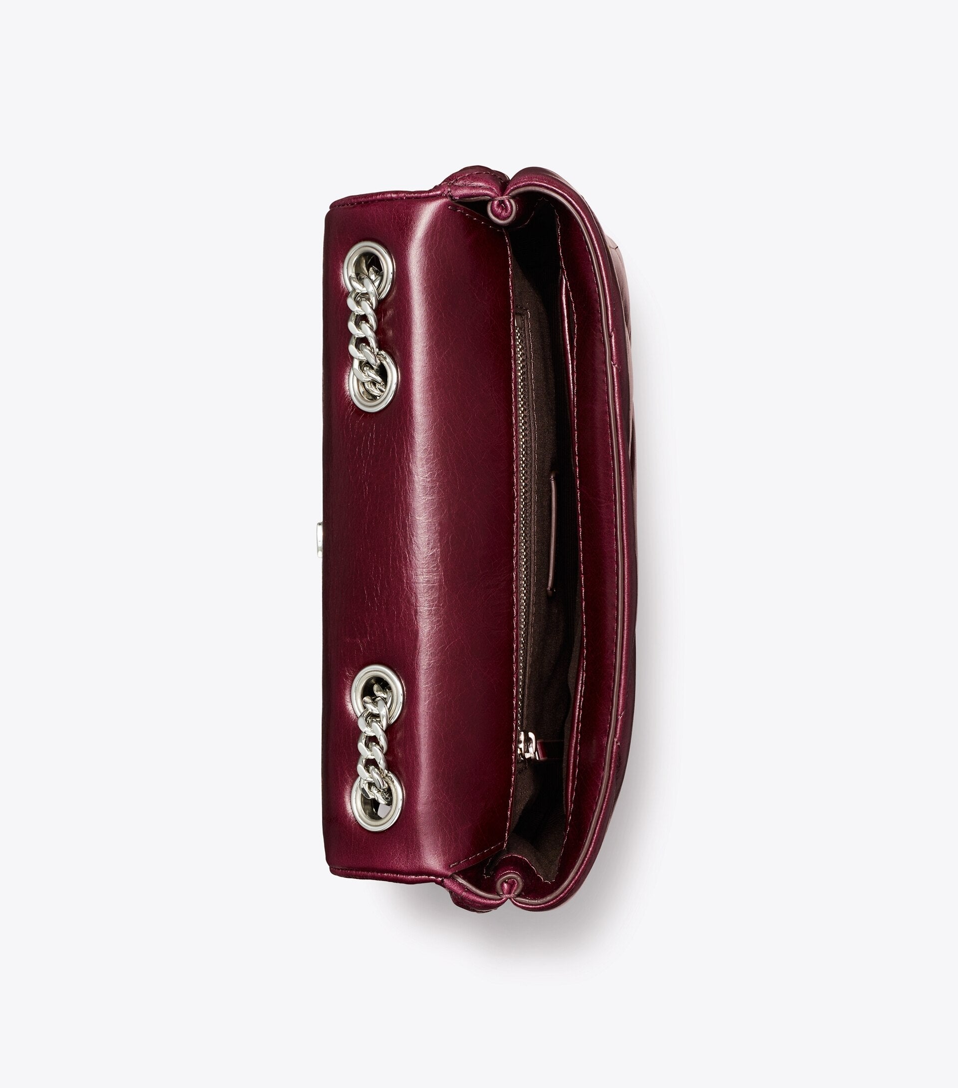 - Convertible chain shoulder strap with 22.2" (56.5cm) drop; leather shoulder guard for comfort