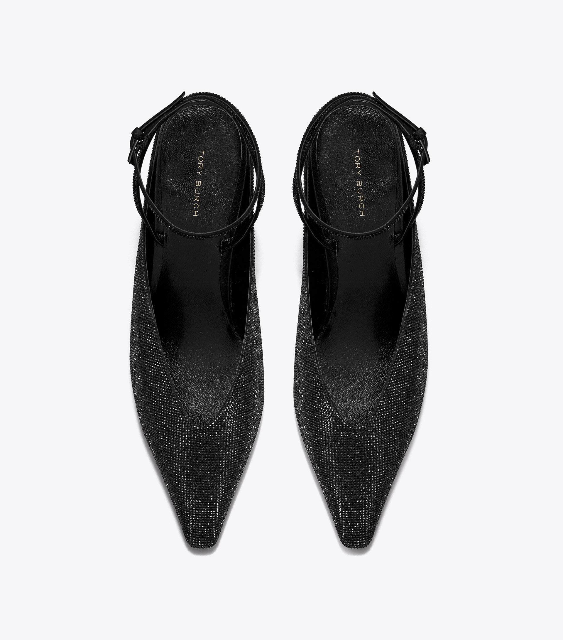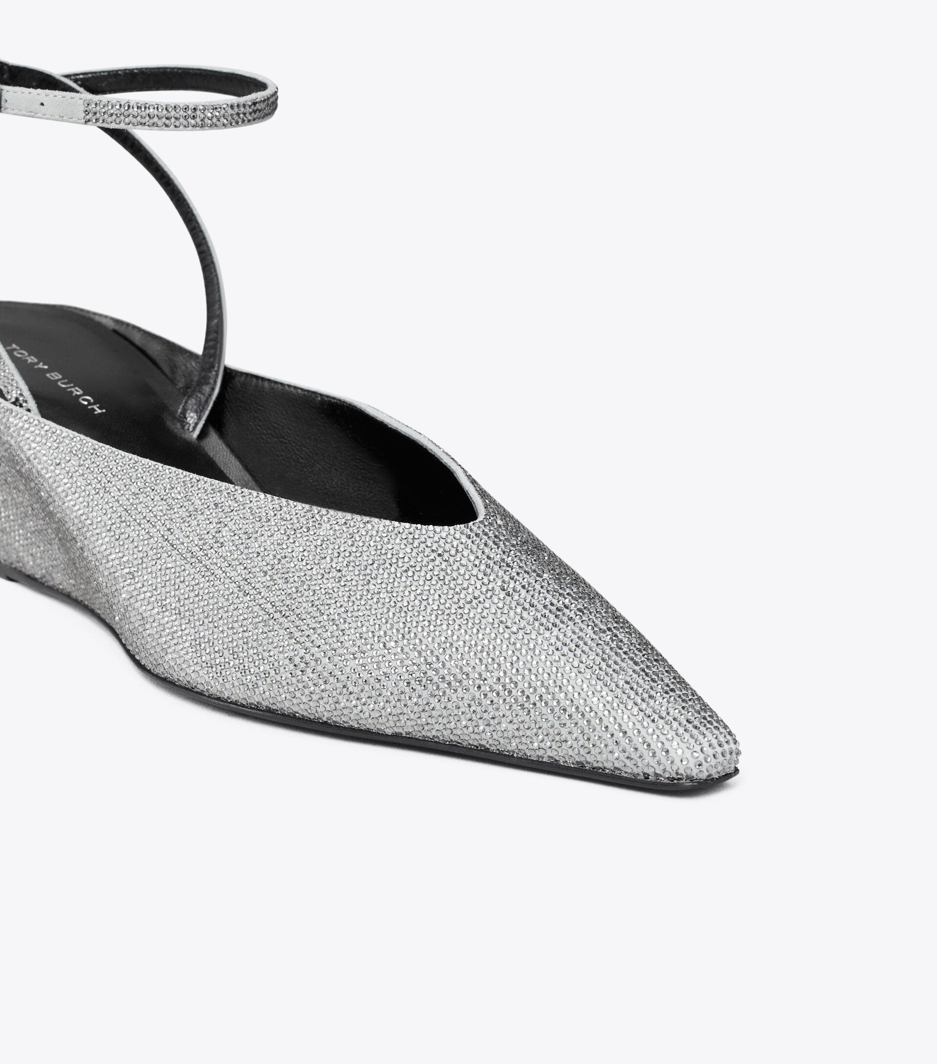 - Buckled ankle strap closure