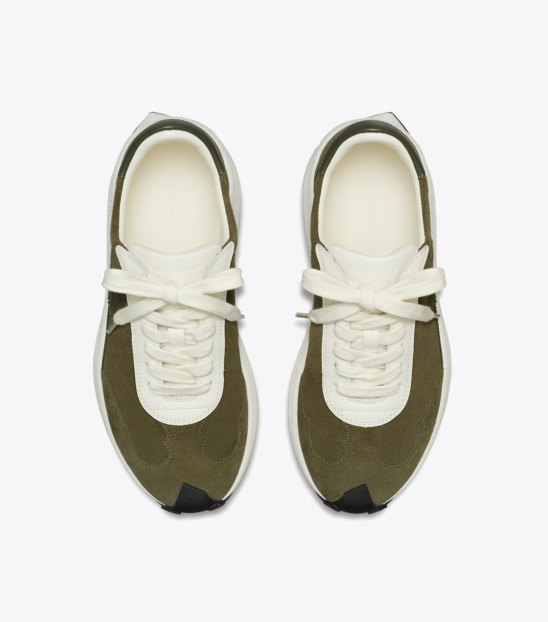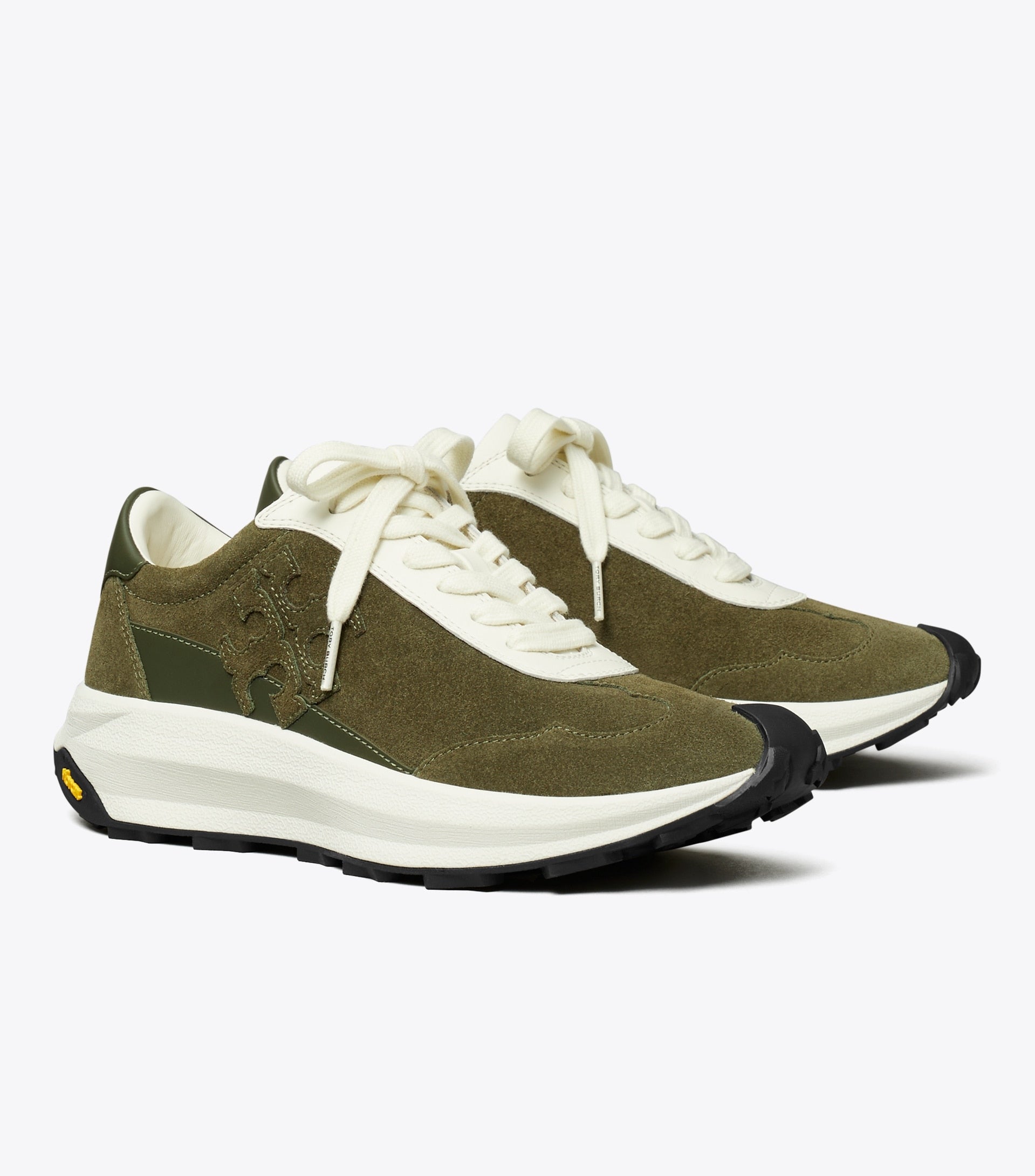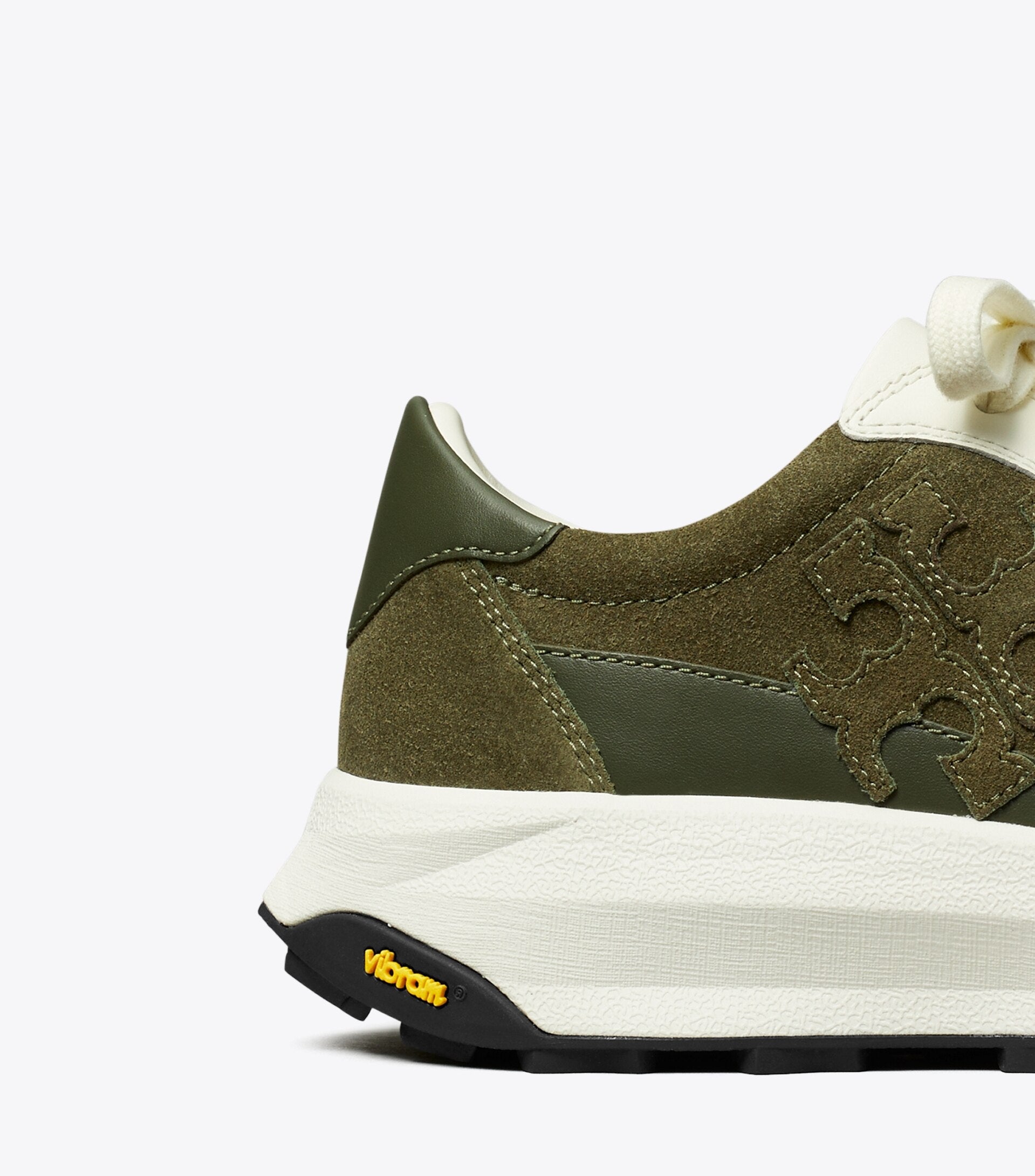 - Suede upper; leather trim